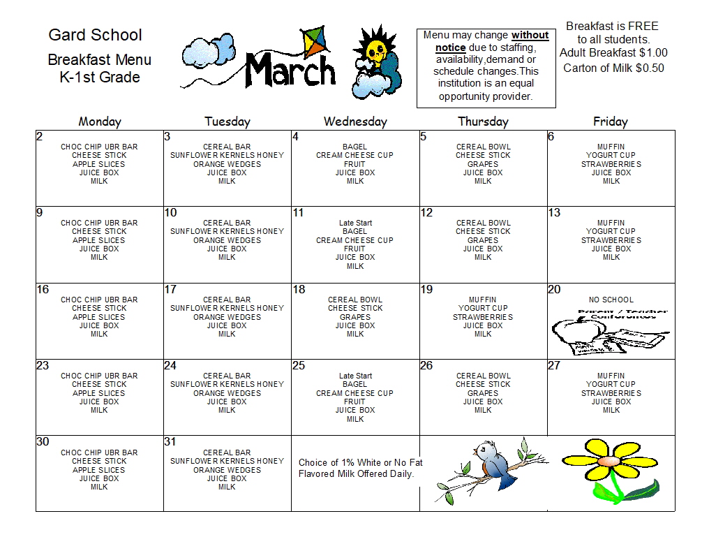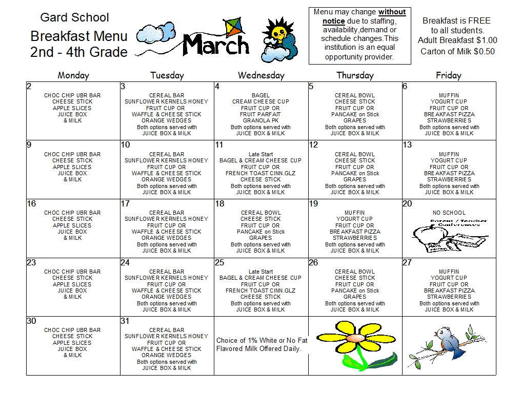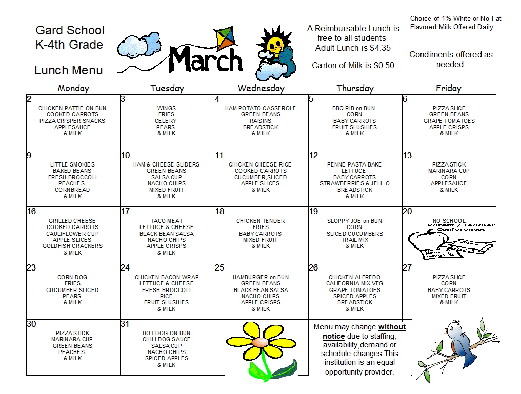 Menu Change for this week due to snow day